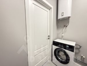 Современная бытовая техника: варочная панель, духовой шкаф, вытяжка, двухкамерный холодильник, электрочайник, СВЧ, фен, утюг, стиральная машина.