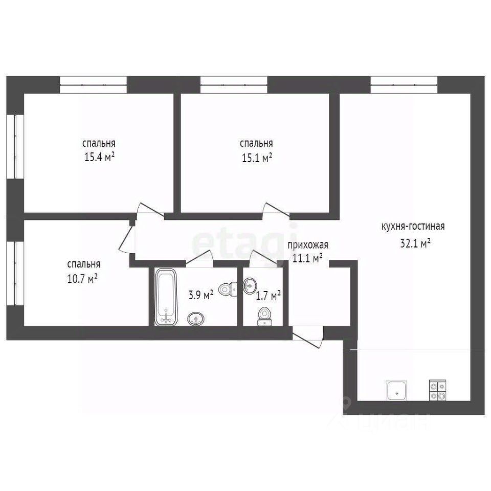 Сдаётся 3 - комнатная квартира в Тюмени, ул. Полевая, д. 117, корпус. 5, жилой комплекс Озёрный парк