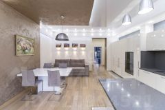• Полностью укомплектована техникой и мебелью: кондиционер, кухонный гарнитур, варочная панель, телевизор, стиральная машина, холодильник, микроволновая печь, двуспальная кровать и диван
