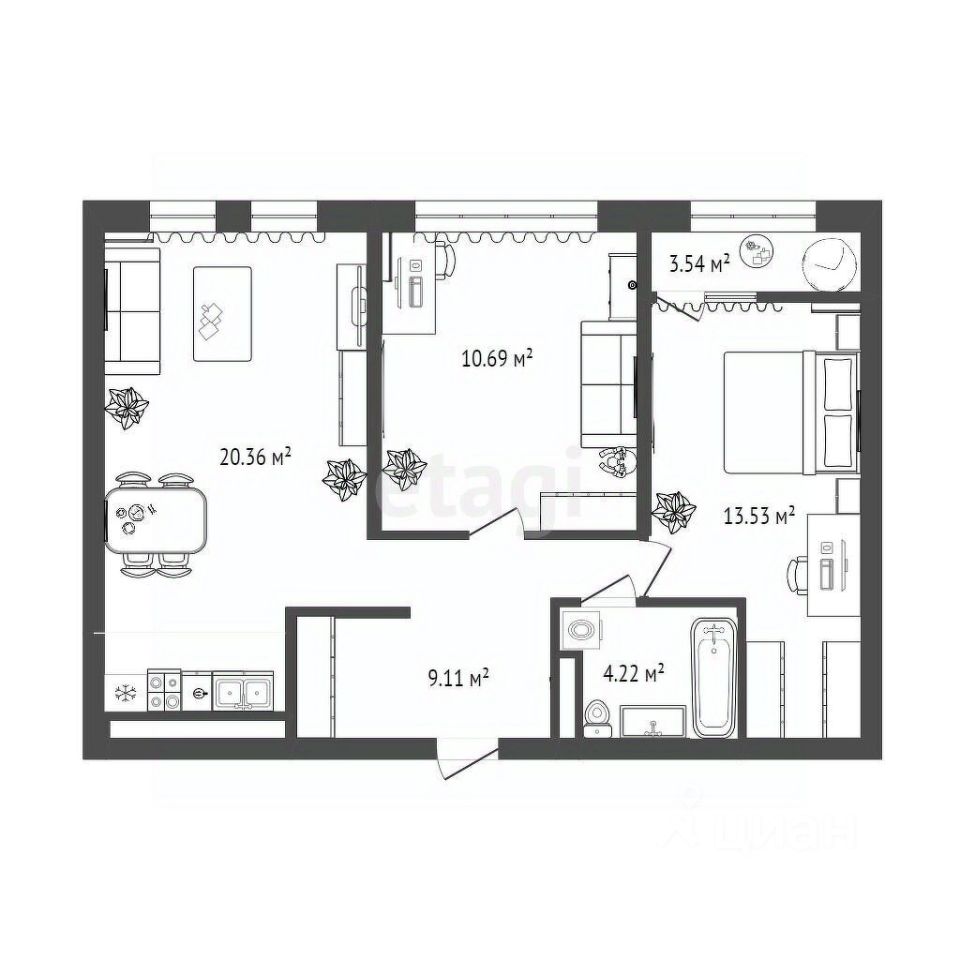 Этаж 8/10, площадь 62 м².