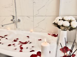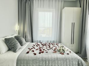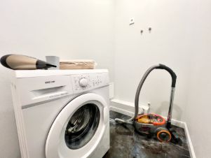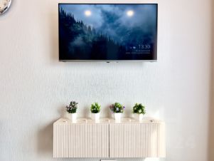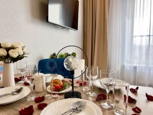 Наши апартаменты оснащены всем необходимым для комфортного пребывания: утюг, гладильная доска, стиральная машина, кондиционер, сушилка для белья, фен. И, конечно же, бесплатный Wi-Fi и два телевизора 43 дюймов со Smart TV для вашего удобства.