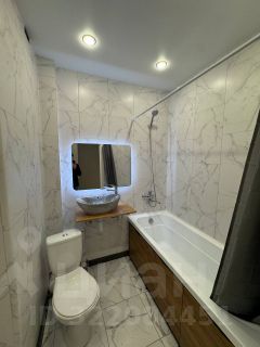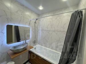 В квартире сделан современный ремонт. Санузел совмещённый, оборудован ванной, раковиной и унитазом.