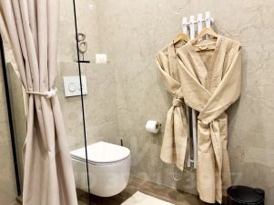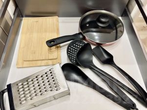 В кухне вы найдете всю современную бытовую технику: СВЧ-печь, плиту, холодильник, электрочайник, кофемашину, а также посуду и кухонные принадлежности.