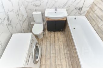 Квартира с современным ремонтом из качественных материалов. Ванная комната облицована керамогранитом, установлена ванна, унитаз, натяжной потолок. На полу ламинат 33 класса, на стенах обои.