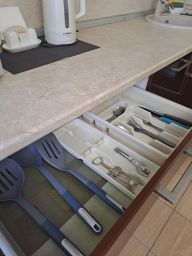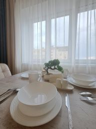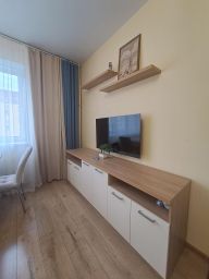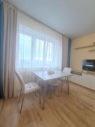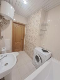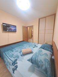 В апартаментах возможно размещение 4 человек. Спальные места: двуспальная кровать, раскладной диван. Кухня оборудована необходимой посудой и техникой: электрическая плита, холодильник, чайник, микроволновая печь. К услугам также телевизор, стиральная машина, кондиционер, фен, утюг, постельное белье, полотенца, гигиенические принадлежности.