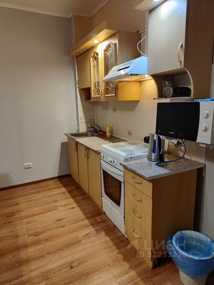 Студия с балконом, обычный ремонт, все необходимое. Стиральная машинка, микроволновка, холодильник, чайник, Wi-Fi, телевизор, диван, шкаф, посуда.