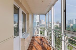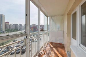 Особенность квартиры — просторная кухня-гостиная площадью 16 м², изолированная спальня и застекленный балкон с пластиковыми окнами.