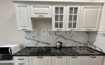 Современная кухня с бытовой техникой (холодильник, плита, микроволновая печь, посудомоечная машина)