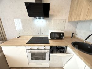Современная бытовая техника: варочная панель, двухкамерный холодильник, вытяжка, электрочайник, СВЧ, фен, утюг, стиральная машина.