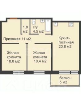 Этаж 6/18, Общая площадь 60 м² Площадь кухни 20 м²