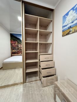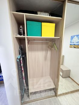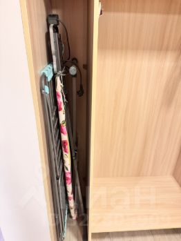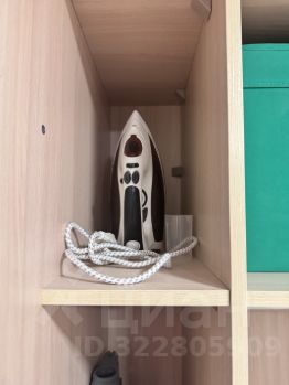 Спальня выведена в отдельное помещение, оснащена двуспальной кроватью, прикроватной тумбой, большой шкаф-купе. Имеется сушилка для белья, гладильная доска, утюг.