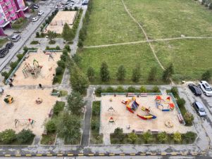 Во дворе имеется несколько детских площадок, закрытое футбольное поле. Дворовая территория и дом чистые, ухоженные. Район и соседи тихие.