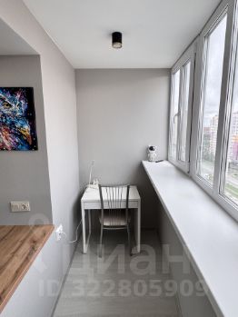 На балконе пластиковый тройной стеклопакет, пол с подогревом, оборудована небольшая рабочая зона. Проведено электричество и дополнительное освещение.