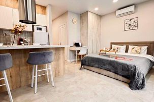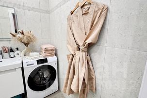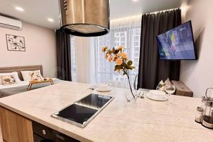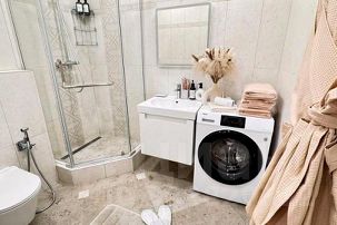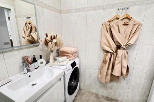 Наши апартаменты оснащены всем необходимым для комфортного пребывания: утюг, гладильная доска, стиральная машина, кондиционер, сушилка для белья, фен. И, конечно же, бесплатный Wi-Fi и телевизор 55 дюймов со Smart TV для вашего удобства.