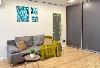 Интерьер в природных тонах — зелёный, дерево и свет — сочетание, которое создаёт атмосферу покоя Большая двуспальная кровать — для сна без компромиссов Удобный диван — раскладывается (и чаще всего занят первым ) Smart-TV с Netflix и YouTube — уютные вечера гарантированы Полностью оборудованная кухня — готовить, завтракать или просто красиво разложить доставку Современная ванная: душевая, большое зеркало (селфи — на уровне ), фен и стиральная машина