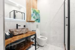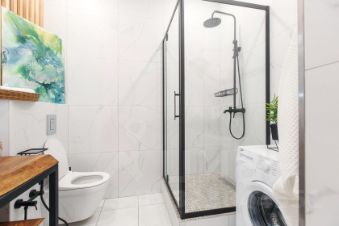 Зона кухни оборудована всей техникой: холодильник, плита, посудомоечная машина, микроволновка, чайник, капсульная кофемашина, тостер, блендер, посуда, посудомоечная машина. В ванной: душ, набор косметики, фен, стиральная машина, тёплый пол.