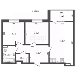 Этаж 13, площадь 56 м²