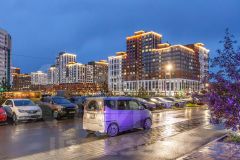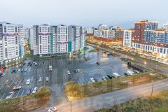 Парковка у дома, рядом множество магазинов, остановка, аптеки.