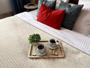 Чистое и качественное постельное белье и полотенца. Тщательная влажная уборка перед каждым заездом. Наличие необходимых в быту вещей: личные средства гигиены, посуда, техника. Высокоскоростной Wi-fi и интерактивное ТV. Количество спальных мест 2+2. Отдельная спальня с кроватью king size с удобным матрасом, раскладной полутораспальный диван для комфортного сна. Предоставляется чистое и качественное постельное белье. В распоряжении гостей полностью укомплектованная посудой и всем необходимым кухня-гостиная. Оборудована холодильником, микроволновкой, духовкой, плитой, чайником. Ванная комната с туалетно-косметическими принадлежностями. На каждого гостя предоставляется два полотенца. Есть фен, утюг, гладильная доска.