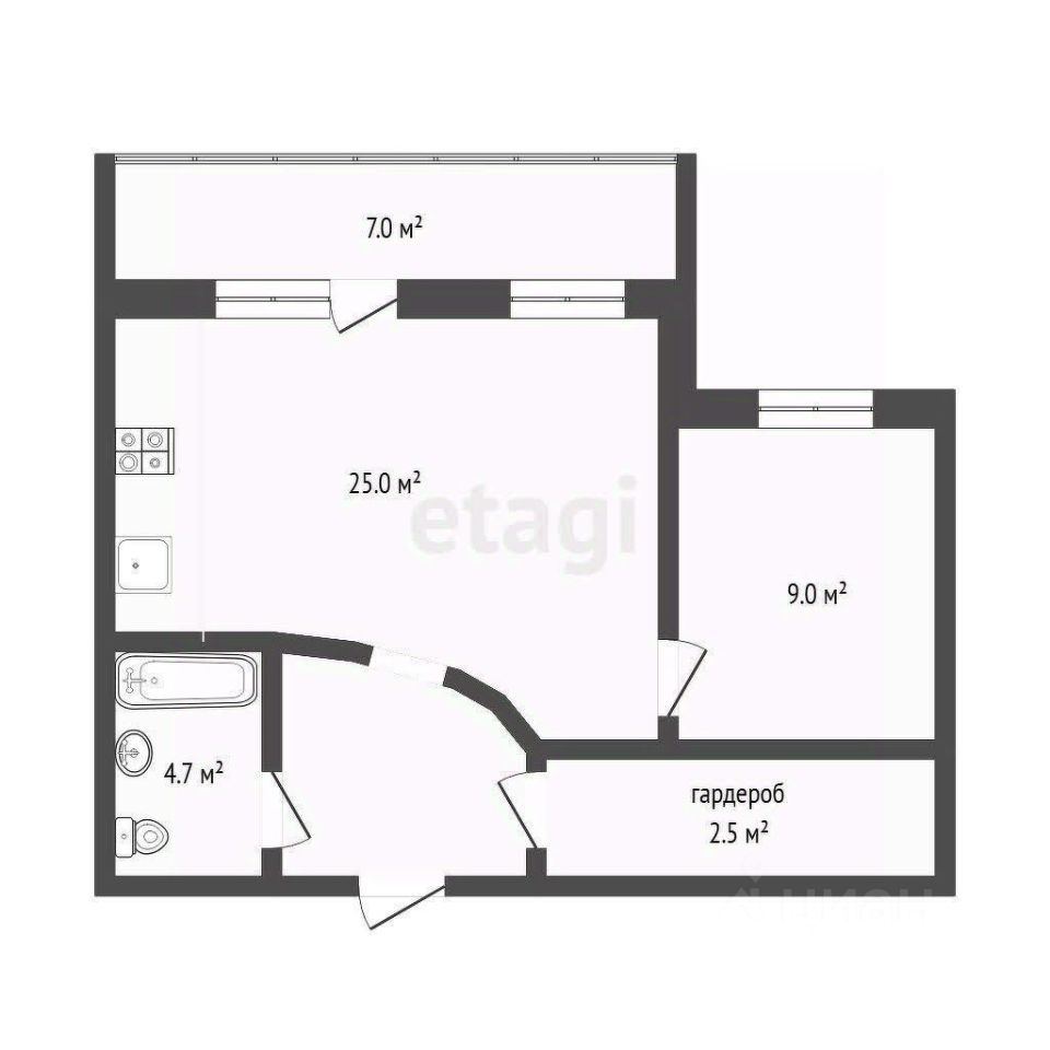 Этаж 7, площадь 52 м²