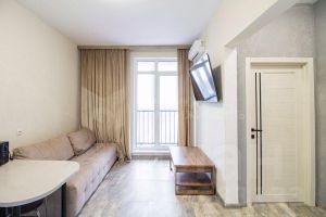 Сдается просторная однокомнатная квартира в новом современном жилом комплексе "Краснолесье".  Квартира укомплектована всей необходимой техникой и мебелью. В кухне-гостиной есть кухонный гарнитур, стол со стульями, диван раскладной, ЖК-Телевизор, кондиционер, микроволновая печь, электроплита с духовым шкафом, чайник, журнальный стол, холодильник встроенный, в спальне двуспальная кровать с удобным матрасом, просторный шкаф, есть стиральная машинка-автомат в прихожей. Сдается за 35 000, включая коммунальные услуги! Залог 5000 рублей, звоните! Дополнительно оплачивается комиссия с покупателя. Номер объекта: 3950426