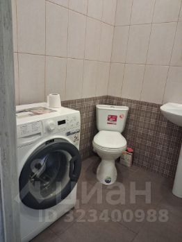 В студии есть всё необходимое для жизни: на кухне и в комнате установлена мебель, имеется холодильник и стиральная машина.