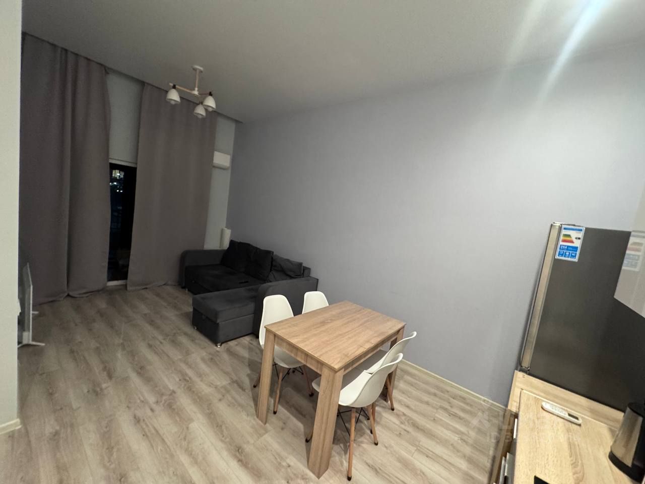Квартира расположена на первом этаже нового многоэтажного дома, построенного в 2023 году. Общая площадь составляет 45 кв. м, дополнительно - терраса 10 кв.м., меблирована (стол, диван, два кресла). Просторная кухня-гостинная, оснащена всей необходимой современной техникой (холодильник, плита, посудомойка, кондиционер). Вместительная ванная комната соединена с туалетом. В спальне стоит большая кровать-чердак, на 1 этаже которого размещен гардероб.