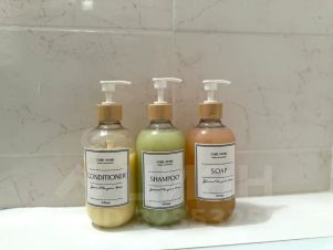 гель для душа, шампунь, бальзам для волос;