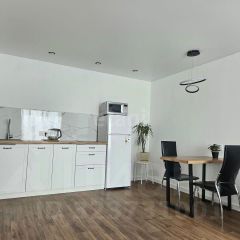 - Полностью укомплектована техникой и мебелью: диван, телевизор, кондиционер, кухонный гарнитур, варочная панель, холодильник, стол и стулья, стиральная машина.