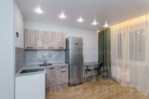 В студии для вашего комфорта есть стиральная машинка-автомат, холодильник, кухонный гарнитур, варочная поверхность для приготовления пищи, стеклянный кухонный стол с 2 стульями, микроволновая печь, диван-кровать.