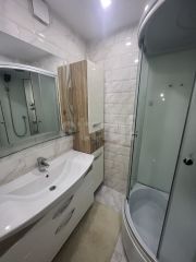 Квартира укомплектована мебелью и техникой, а именно: электрический чайник, микроволновая печь, вытяжка, варочная поверхность, духовой шкаф, холодильник, стиральная машина, кондиционер