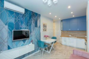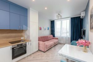 Современная квартира с продуманной планировкой: кухня-гостиная, отдельная спальня, прихожая, санузел и балкон. Выполнен качественный ремонт по дизайн-проекту.
