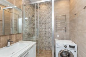 • Санузел: душевая, стиральная машина, инсталляция, туба с раковиной.