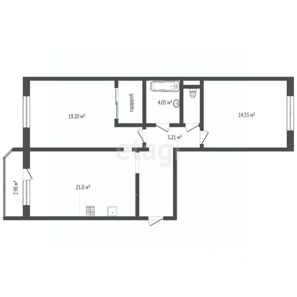 Адрес: Тюмень, ул. Валентины Трофимовой, 7 Площадь: 69.6 м² Этаж: 7