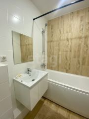 Квартира полностью укомплектована всем необходимым для комфортного проживания: стильный кухонный гарнитур, варочная панель, духовой шкаф, холодильник, стиральная машина, кондиционер, вытяжка, телевизор, диван и шкаф-купе. Здесь вас ждет идеальная чистота и свежесть, а ремонт выполнен с использованием современных и высококачественных материалов, что создаст атмосферу уюта и стиля.