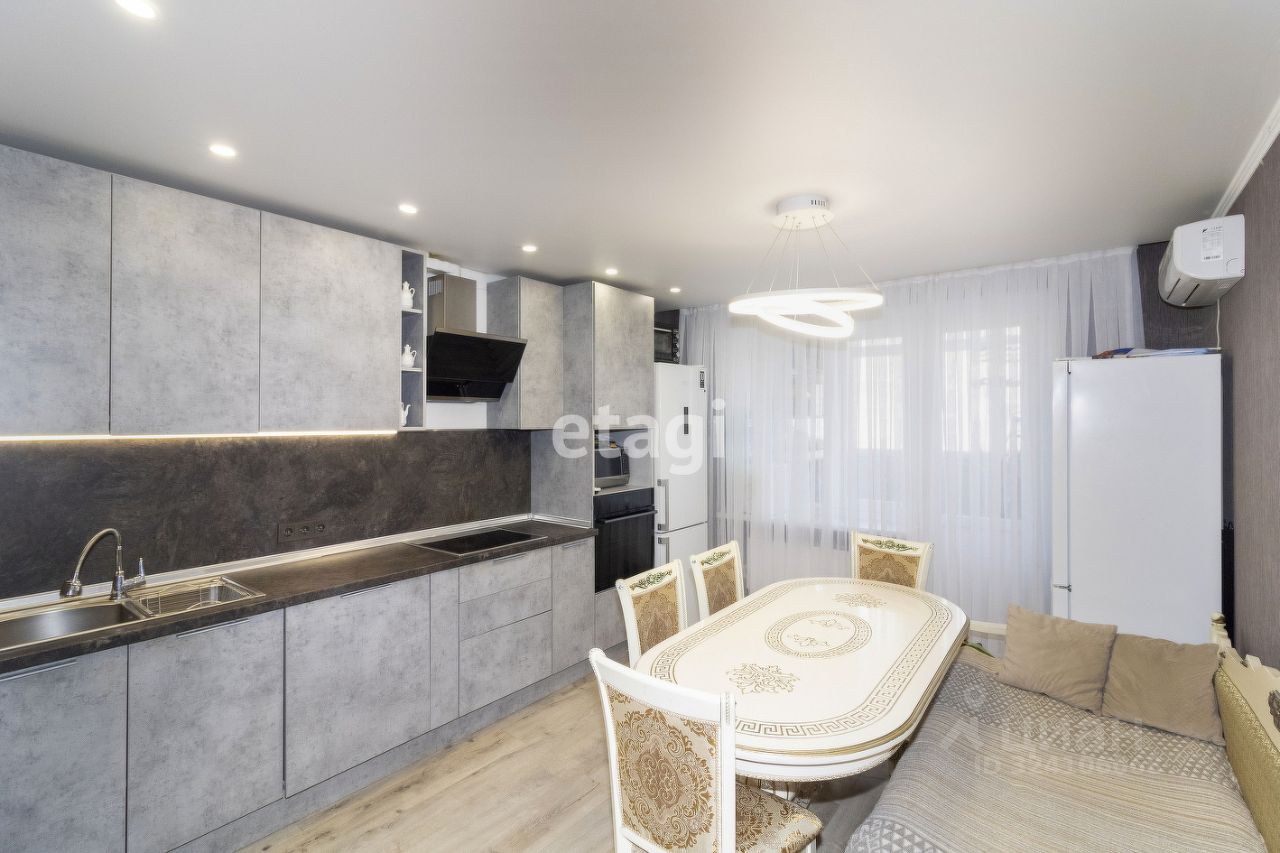 Современный ремонт выполнен в приятных тонах с использованием качественных отделочных материалов.Установлены натяжные матовые потолки в кухне ,коридоре и во всех комнатах. С/у раздельный в кафеле. В кухне установлен современный гарнитур с со встроенной техникой. В коридоре установлен вместительный шкаф купе, остается практически вся мебель. Все необходимое для жизни есть рядом: Пятерочка, Монетка, Магнит и т.д аптеки, фитнес, ТЦ Колумб, Блошинка. В настоящее время открылись 2 новых детских сада. Поблизости находится поликлиника номер 5, Доктор А, остановка в минутах от дома.