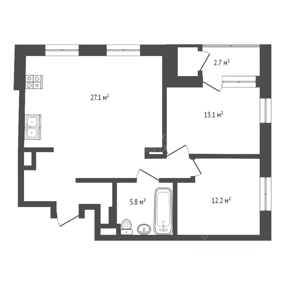Общая площадь 74 кв.м, высота потолков 2.7 м создаёт ощущение простора. Окна выходят как на улицу, так и во двор, всегда много света и свежего воздуха.