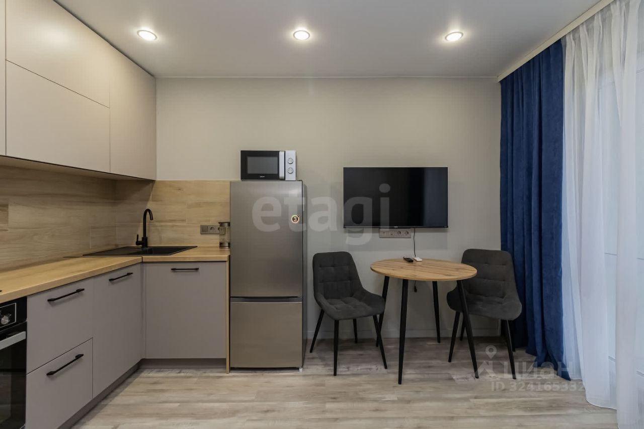 Из техники и мебели имеется: удобный раскладной диван, духовой шкаф с варочной панелью, вытяжка, холодильник и микроволновая печь,телевизор с функцией smart tv, кондиционер, стиральная машина, вертикальный пылесос и современный кухонный гарнитур.