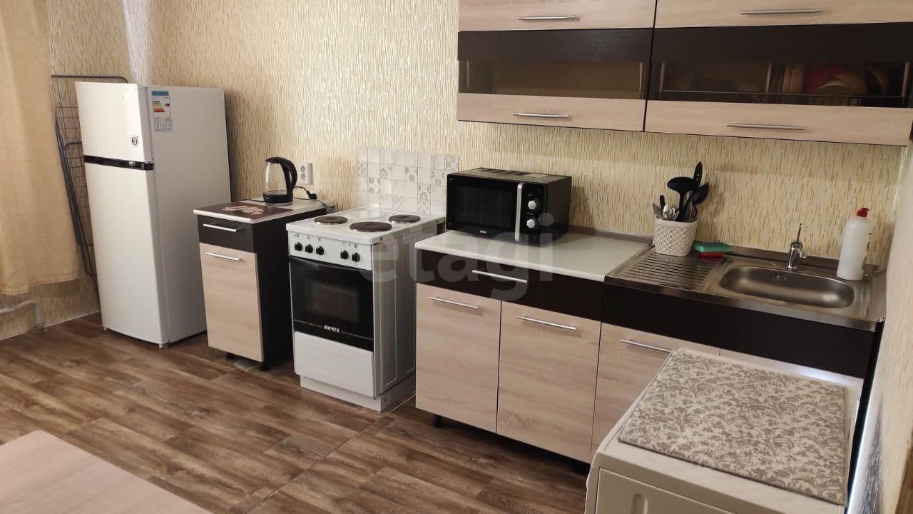 - Полностью укомплектована техникой и мебелью для комфортного проживания: кухонный гарнитур, электрическая плита, стол и стулья, кровать, диван, чайник, микроволновая печь, шкаф, телевизор, холодильник, стиральная машина.