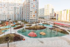 Безопасность и комфорт: Закрытая охраняемая территория с детскими и спортивными площадками, прогулочными зонами.