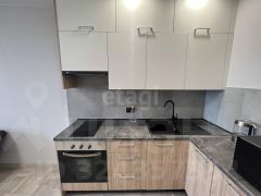 Полностью укомплектована мебелью и техникой: вытяжка, варочная поверхность, духовой шкаф, посудомоечная машина, холодильник, стиральная машина, микроволновая печь, электрический чайник