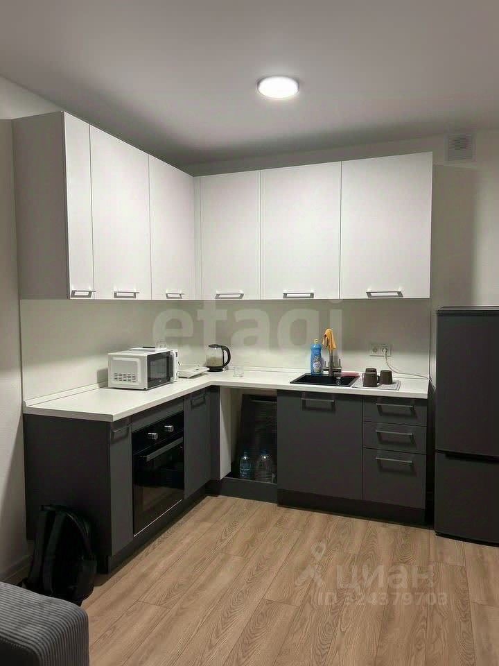 Полностью укомплектована техникой и мебелью: кровать, шкаф, холодильник,чайник ,микроволновка,стиральная машина