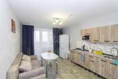 В квартире есть всё для комфортного проживания: кухонный гарнитур, варочная панель, холодильник, стиральная машина, вместительный шкаф, диван, обеденный стол и стулья.
