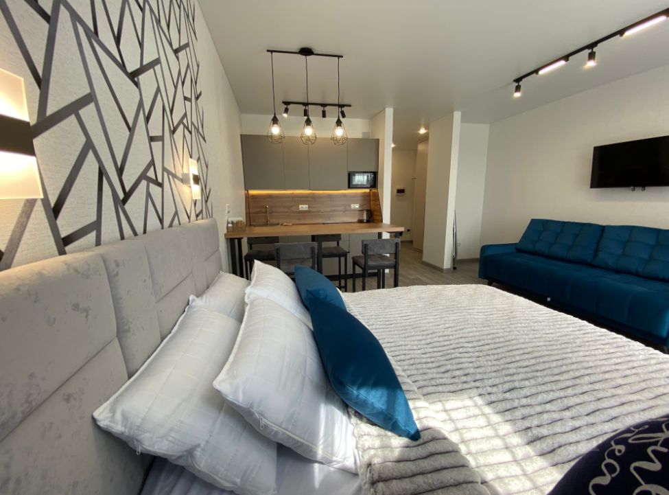 — 33,7 м² свободы: кровать king-size + диван — комфортно 3-4 гостям.