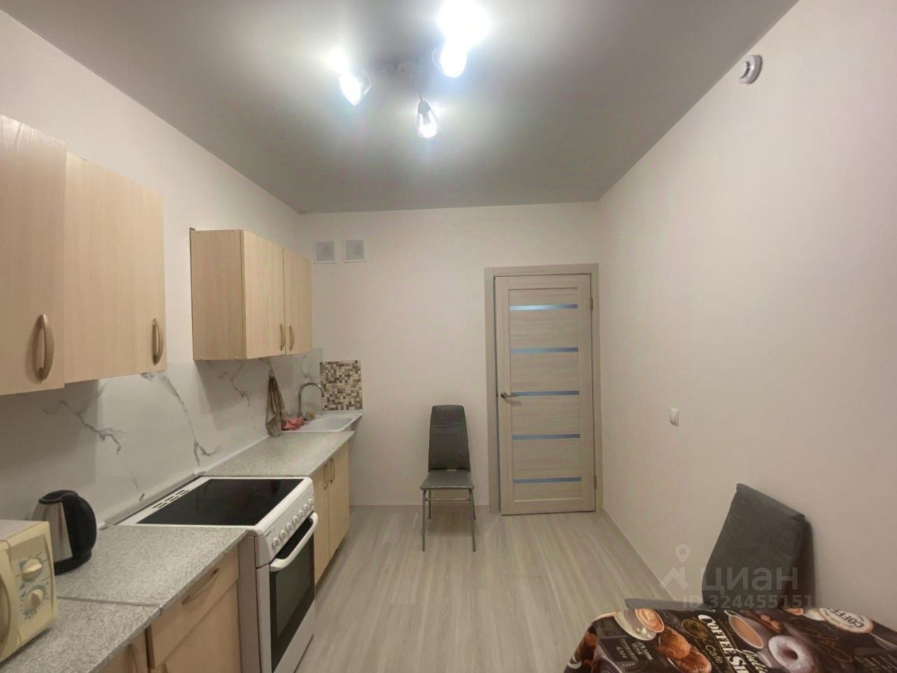 В квартире сделан ремонт, создающий светлую и приятную атмосферу. В комнате есть необходимая мебель: диван, стенка, шкаф. Кухня оборудована холодильником, гарнитуром, столом, стульями, имеется посуда. а в ванной комнате установлена ванна, стиральная машина и шкафчик с зеркалом. Высота потолков составляет 2.5 метра. Окна выходят на улицу, поэтому в квартире всегда много естественного света. В доме два лифта, что удобно для жителей верхних этажей.