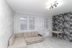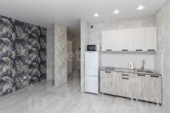 Укомплектована техникой и мебелью: стиральная машина, варочная панель, микроволновая печь, электрический чайник, холодильник, шкаф, обеденная зона, угловой диван, возможно приобретение в счёт арендной платы