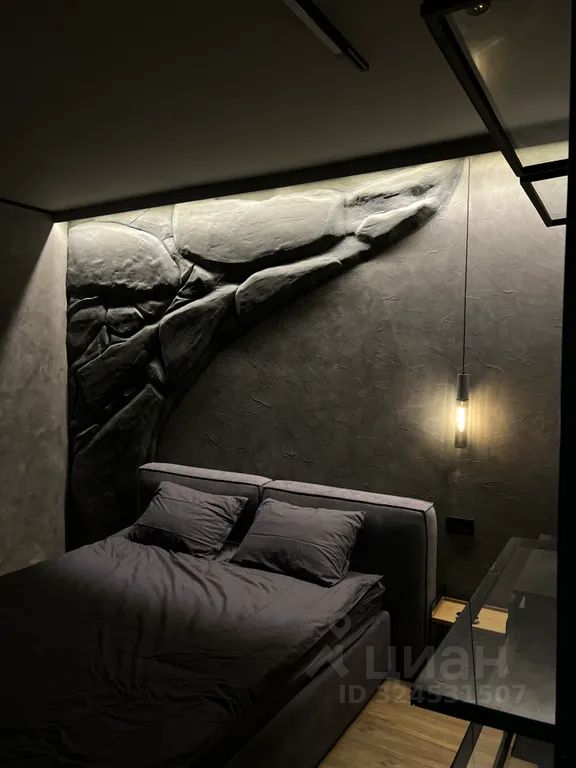 впечатляющая 3D-инсталляция в изголовье кровати, подсвеченная скрытой LED-