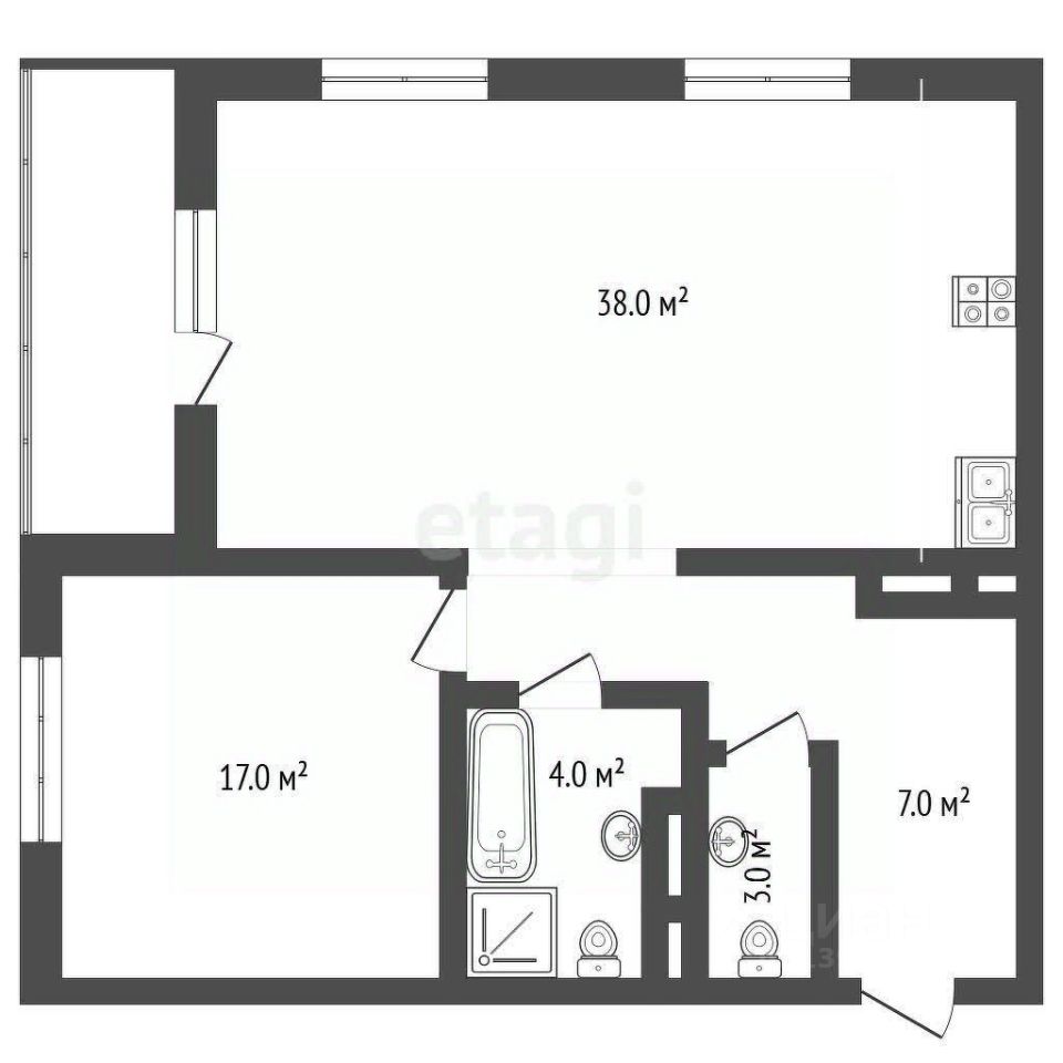 Большая кухня-гостиная 38м² и отдельная спальня с 2х спальной кроватью 17м²