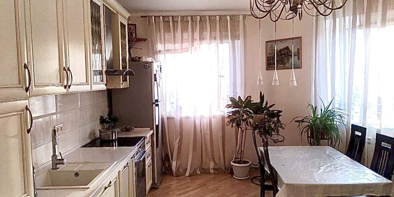 Квартира с хорошим ремонтом. Полностью укомплектована необходимой мебелью и бытовой техникой: большая 2-х спальная кровать + 1 спальная детская, два дивана (детский и гостиный), рабочее место для ребенка, огромный шкаф купе (более 3 метров на длину коридора), на кухне встроенный холодильник, духовой шкаф, микроволновка, фильтры очистки воды, посудомойка, духовка, стиральная машинка.