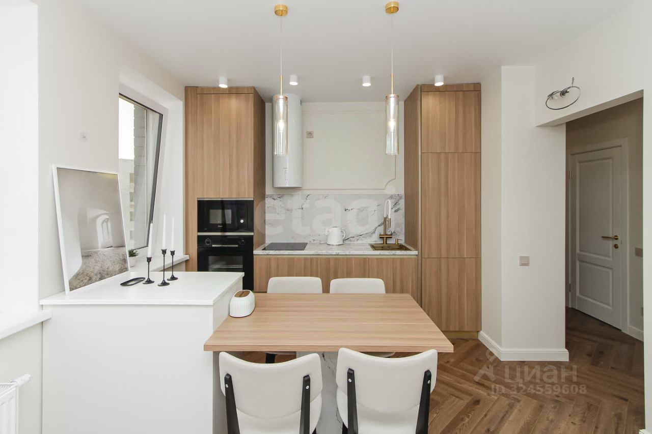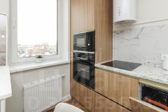 Укомплектована техникой и мебелью: встраиваемый холодильник, посудомоечная машина, духовой шкаф, встраиваемая микроволновая печь, стиральная машина, телевизор, интернет.